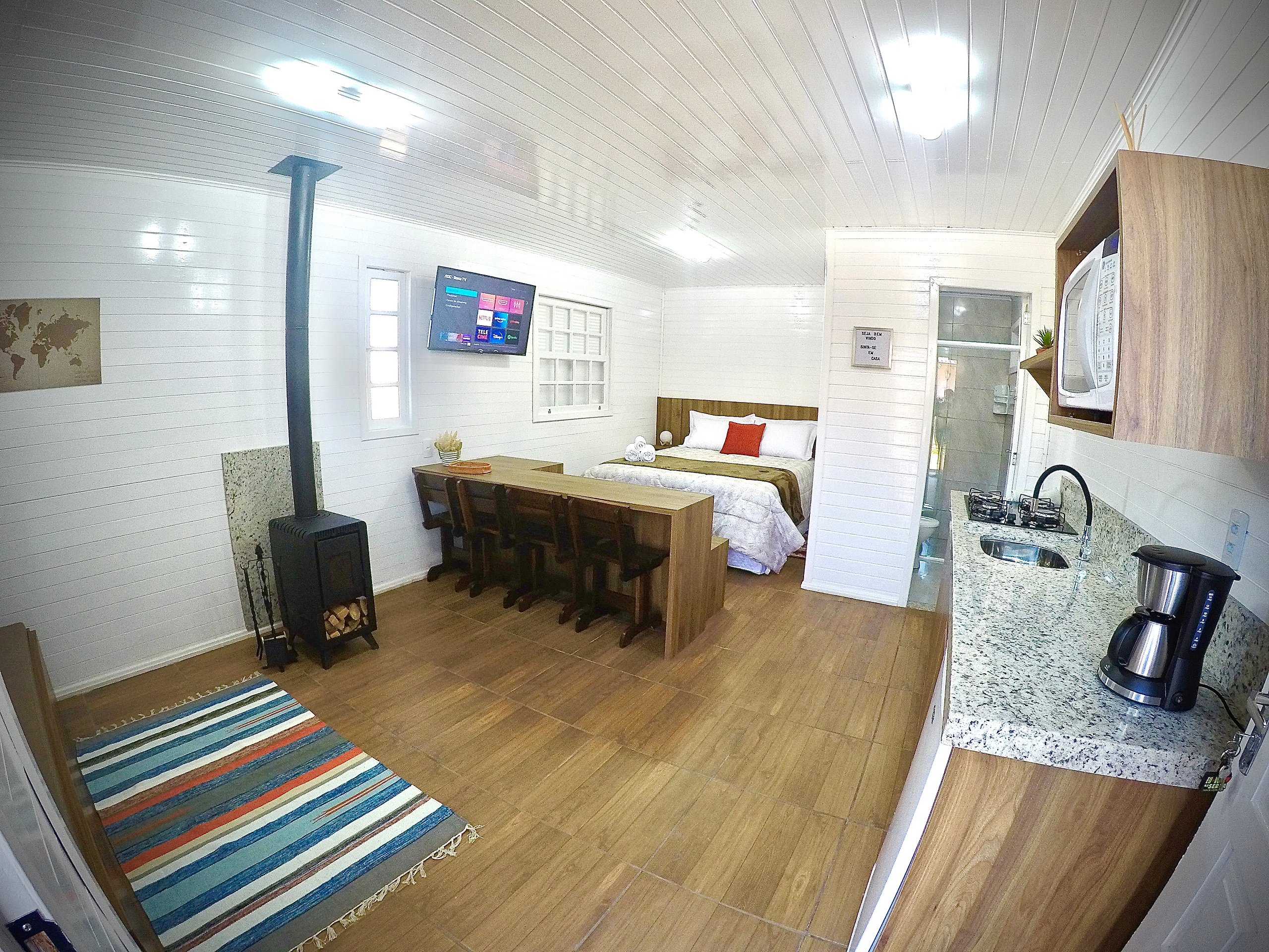 Além disso disponibilizamos pó de café, açúcar e cafeteira para você poder fazer aquele café fresquinho na hora que quiser.